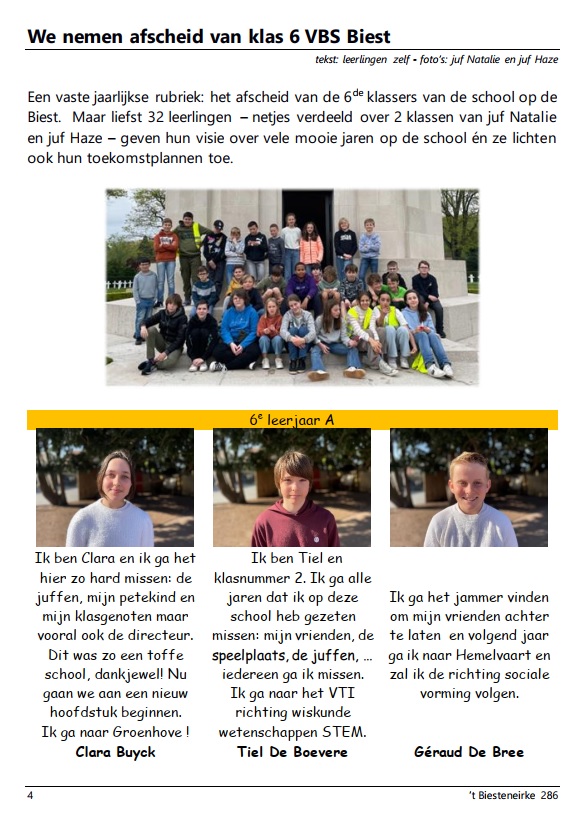 Afscheid van 6A en B – VBS Biest