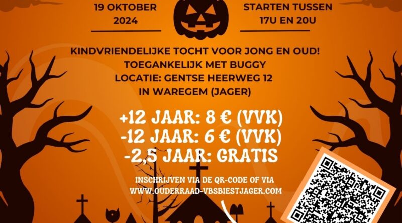 Ouderraad Vrije Basisschool Biest-Jager nodigt u uit voor een griezelige halloweentocht op zaterdag 19 oktober!