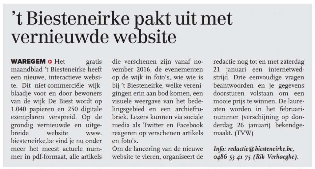 ’t Biesteneirke kwam ook geregeld ter sprake in de media. Een overzicht…
