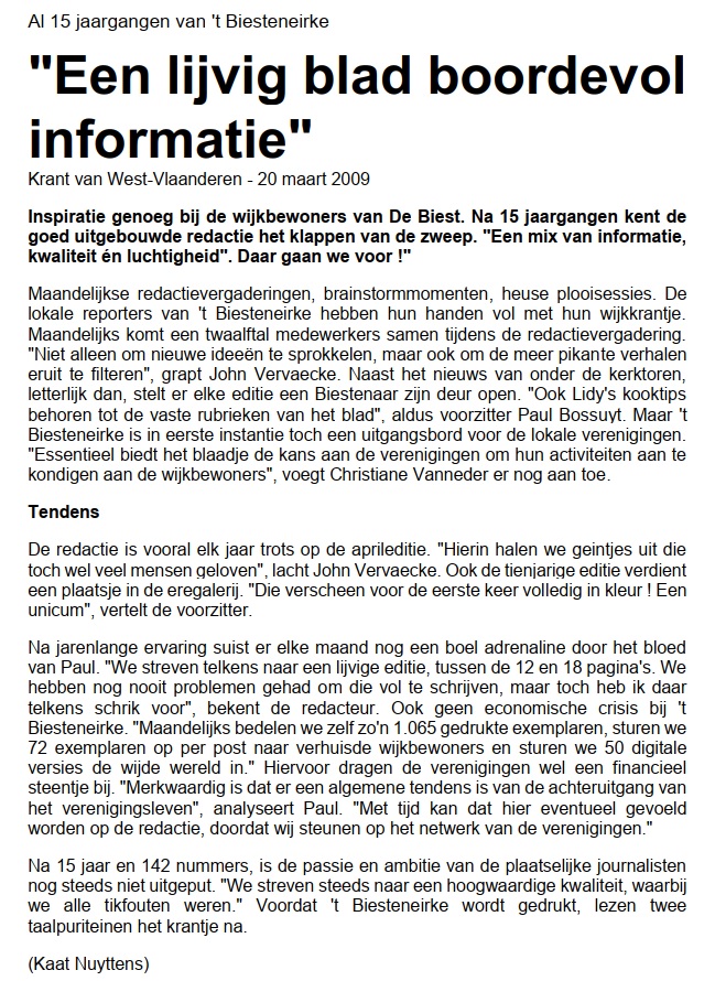 KW 20 maart 2009 (15 jaar ’t Biesteneirke)